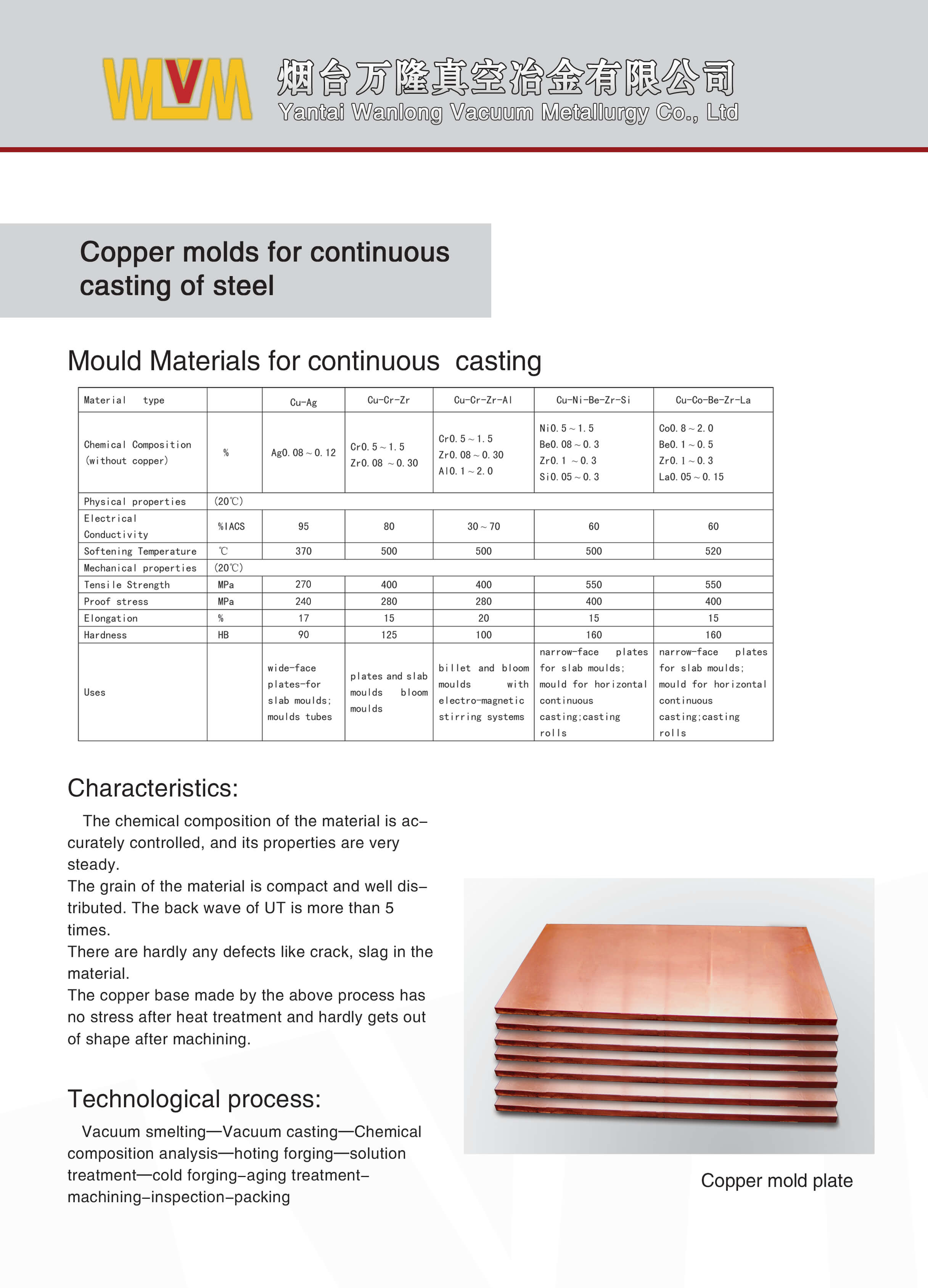 YanTai Wanlong Vacuum Metallurgy Co.,Ltd was founded in 2002, and located in Yantai,China. It is the first company in China to use “special copper” as its leading product.